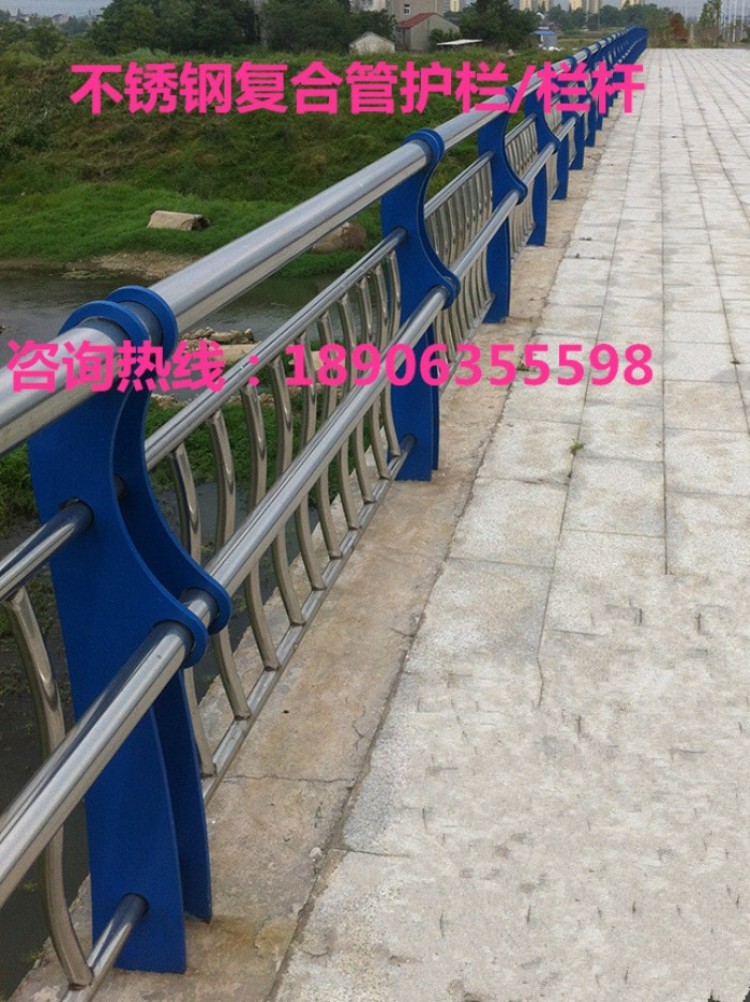 不銹鋼復合管欄桿,它不僅具有不銹鋼管的豪華美觀和現代氣息,又具有普通碳鋼管的堅韌性。是價昂不銹鋼管的替代品,它與鍍鋅噴塑鋼板立柱配合,做成城市、道橋等的安全欄桿。不僅牢固、大方,且可造型各異,是城市景觀護欄的首選。